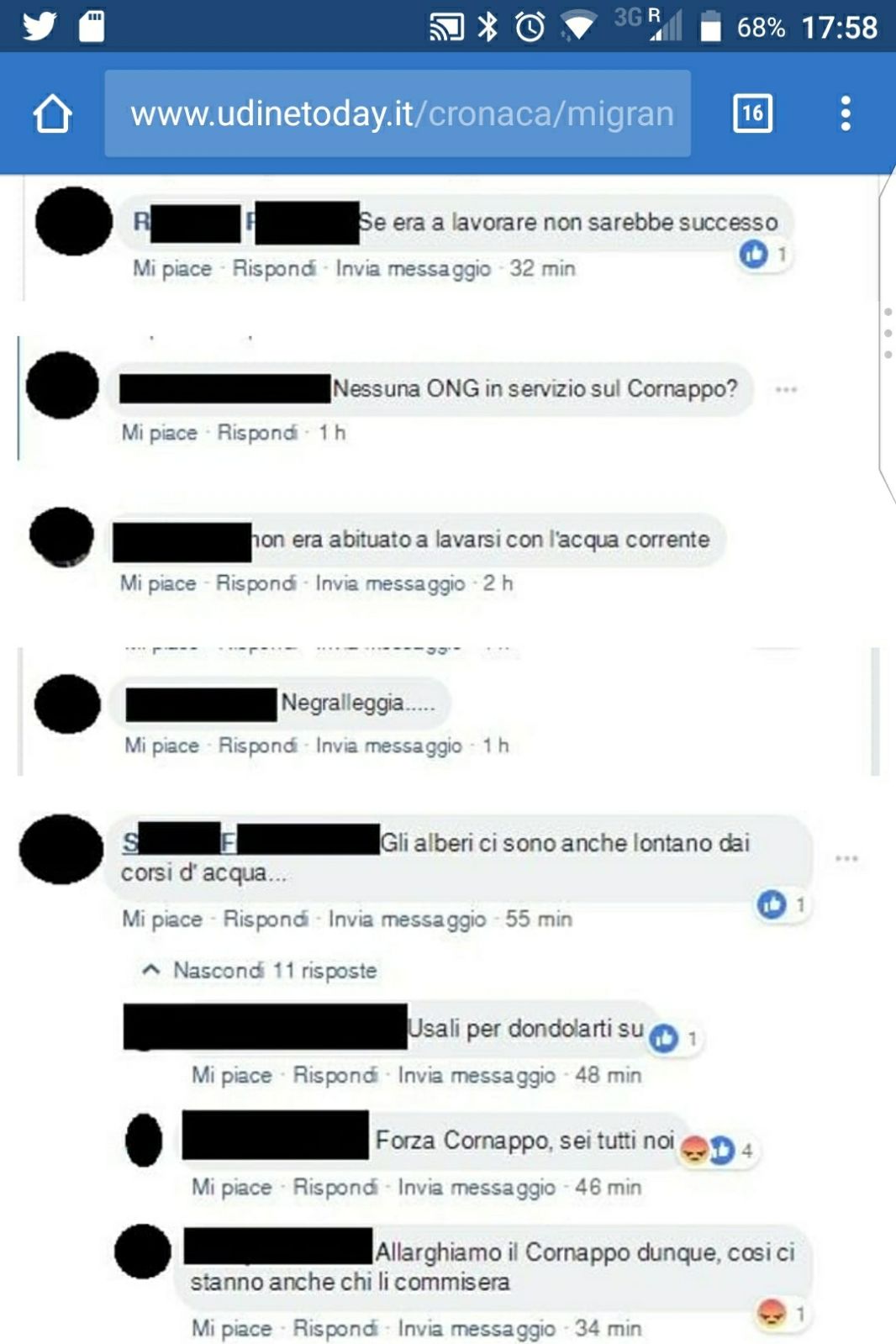 “Il razzismo in Friuli Venezia Giulia dorme sotto il pelo dell’acqua ma c’è, quando ne ha l’occasione alza la testa e si vedono cose orribili. Per la morte di un senegalese, annegato nel torrente Cornappo vicino Nimis sono stati scritti commenti di gioia, espressioni di odio etnico crudele, manifestazioni di cinismo senza ritengo: una miscela di violenza verbale riversata in rete che dovrebbe preoccupare per come si mostra con nome e cognome”. Lo ha affermato “rendendo merito alla testata online UdineToday di aver scoperchiato questa cloaca dando notizia di quanto è avvenuto sul suo profilo Facebook”, il segretario regionale del Pd Salvatore Spitaleri, intervenendo così nel dibattito sui rigurgiti di razzismo in Italia innescato dal recente attacco a una persona di colore, in questo caso alla campionessa azzurra Daisy Osakue.
