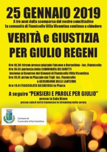 “Il Pd non ha mai smesso di essere a Fiumicello, dove la casa e la famiglia di Giulio Regeni sono un simbolo della giustizia ferita e un appello a risarcire almeno con la verità una perdita che non ha rimedio. Siamo presenti anche nel terzo anniversario della sua morte, per continuare a testimoniare con coerenza la volontà di sapere, la determinazione di non lasciare che il tempo o le convenienze offuschino un delitto orrendo”. Lo afferma il segretario del Pd Fvg Cristiano Shaurli, annunciando la sua presenza accanto ad altri esponenti del Pd domani alla manifestazione ”Verità e giustizia per Giulio Regeni”, a tre anni dalla scomparsa.