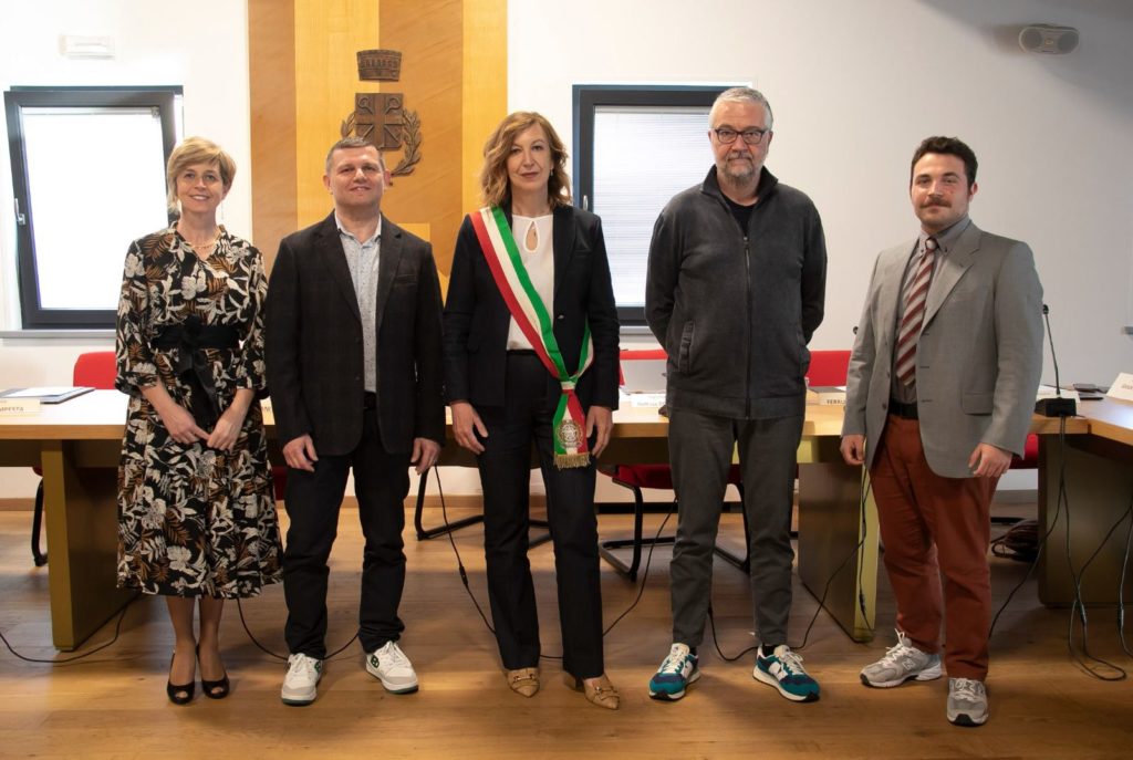 Nella foto la sindaca di San Pier d’Isonzo Denise Zucco, al centro, con la giunta comunale.