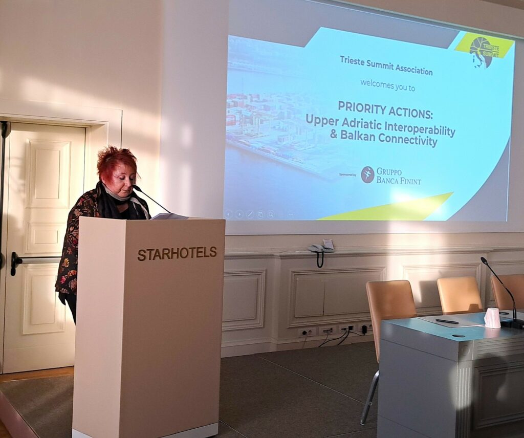 La senatrice ha fatto riferimento allo scalo di Trieste come a un “porto-regione a servizio del Paese” sottolineando al contempo come ci siano “dei nodi che solo il Governo può assumersi la responsabilità di prendere in mano”, collocando tra questi “i negoziati per l’allargamento dell’UE ai Balcani Occidentali” che sono “aprire quanto prima” e la questione della extradoganalità del porto di Trieste.